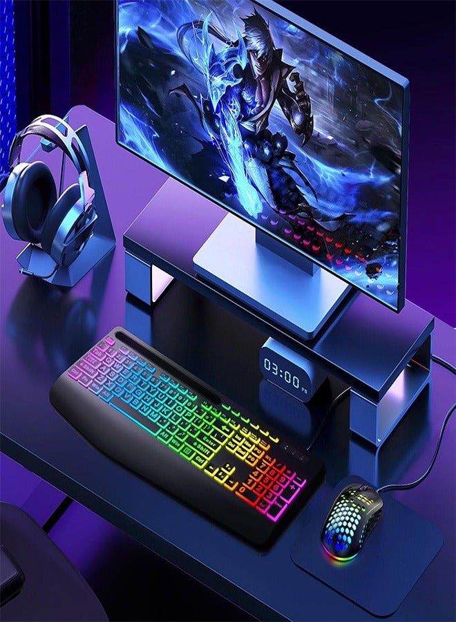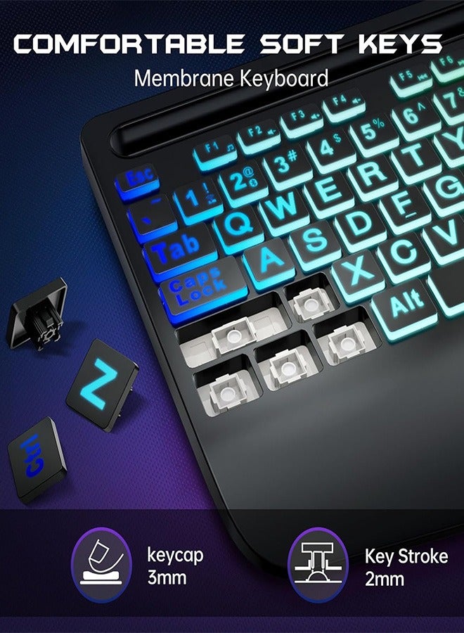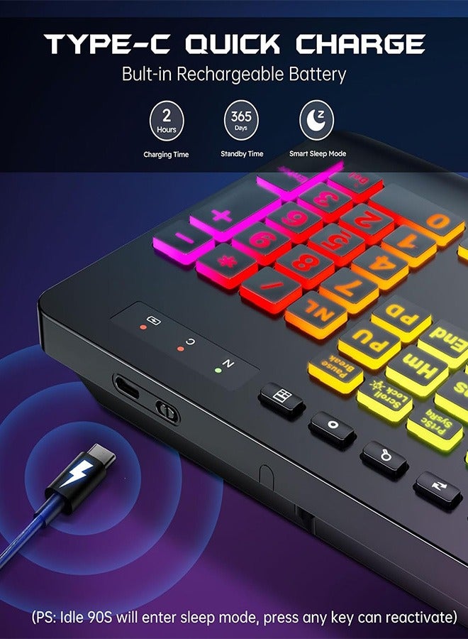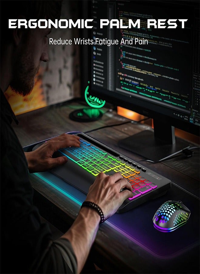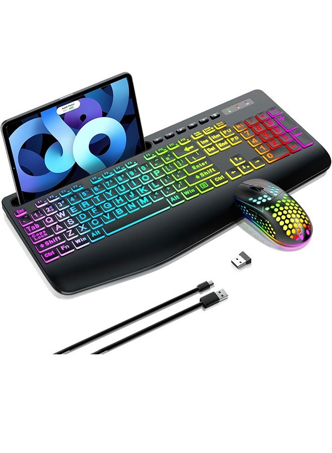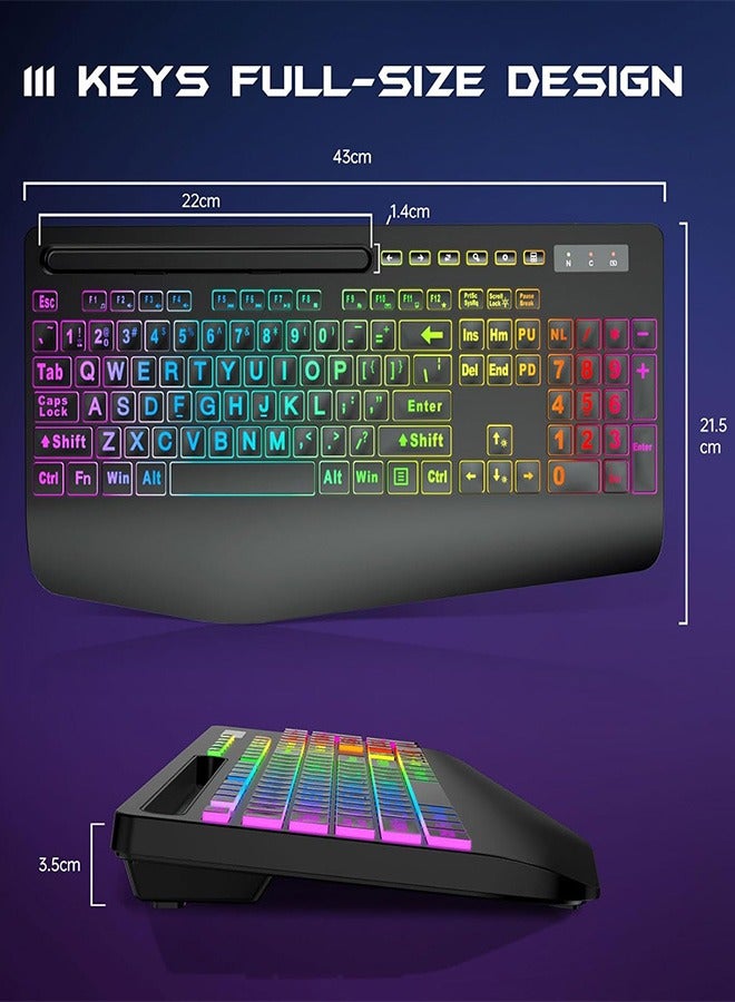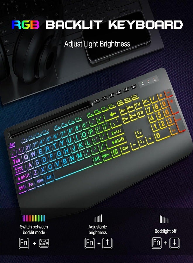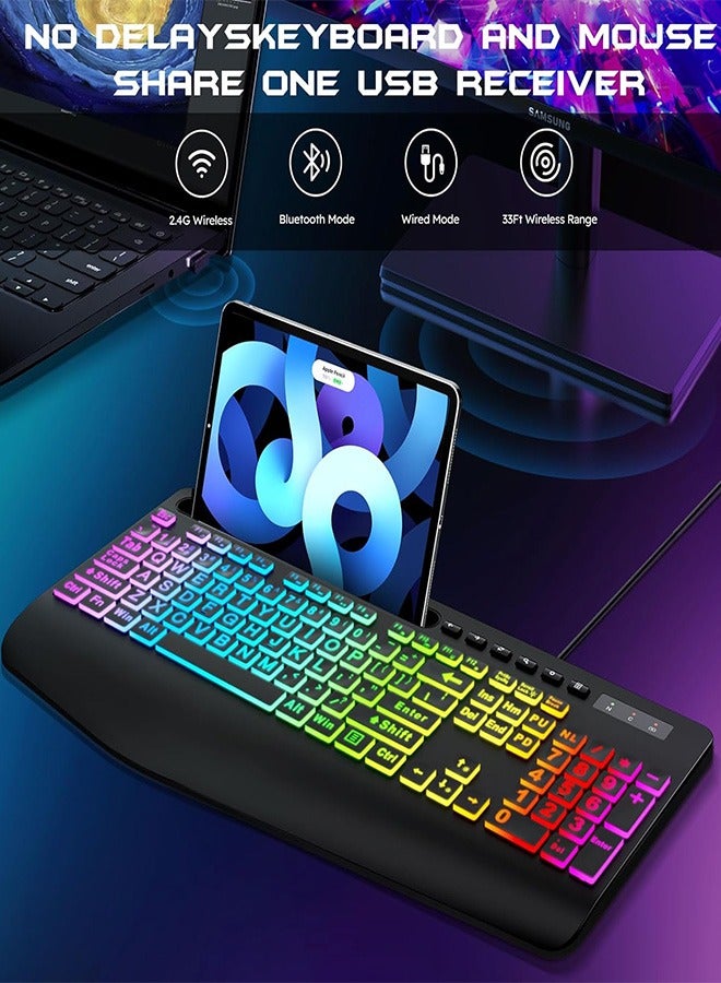 Garlo Wireless Keyboard and Mouse Combo, Membrane Silent Gaming Keyboard with Mechanical Feeling, Full-Size Bluetooth/2.4GHz/wired keyboard, RGB Backlit, Ergonomic Wrist Rest for PC/Computer/Mac/PS5