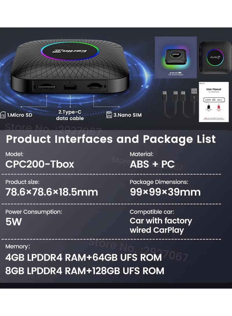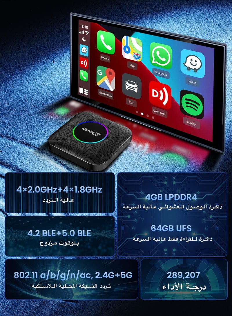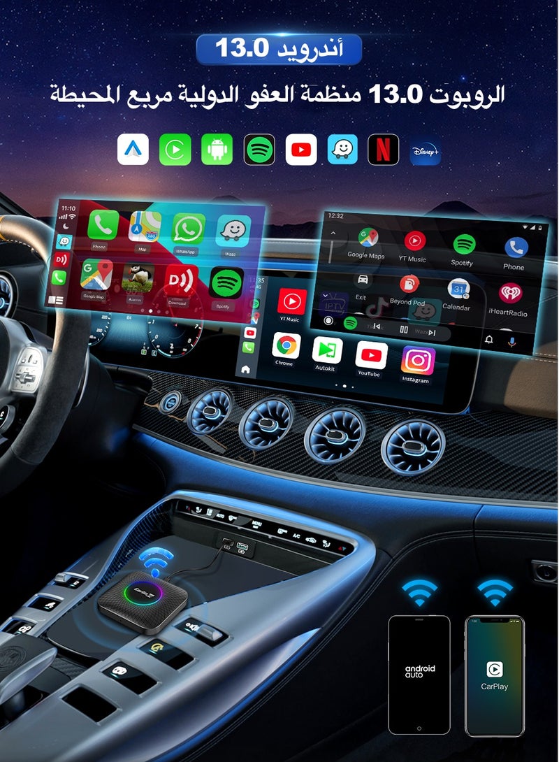 Translation missing: ar.<h2>LED CarPlay Android 13 AI Smart System Box – QCM6225, Wireless CarPlay & Android Auto, 4GB+64GB / 8GB+128GB</h2>