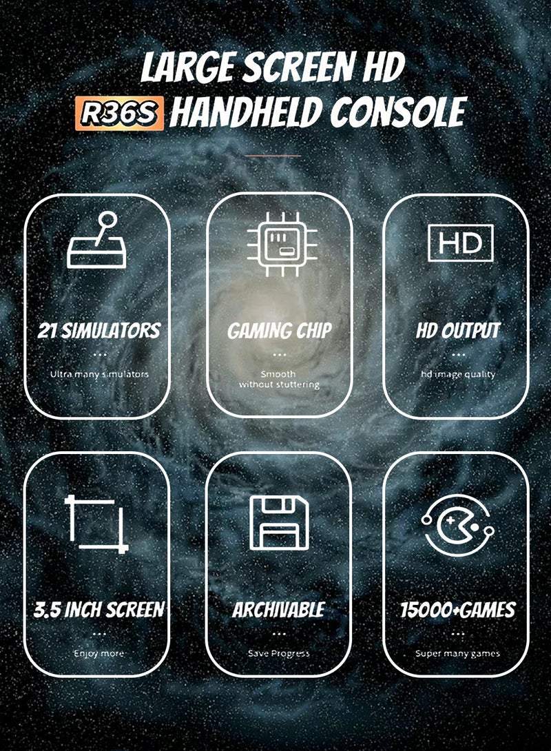 R36s Retro Handheld Gaming Console – 3.5" IPS Display, 64GB Memory, Dual Joysticks, HDMI Output