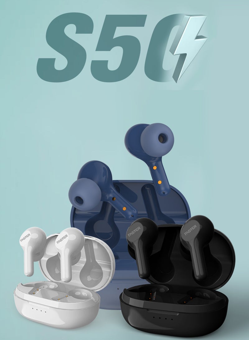 Faster S50 Wireless Earbuds – Bluetooth, High-Fidelity Audio, IPX5 Waterproof, Touch Controls, Active Voice Assistant