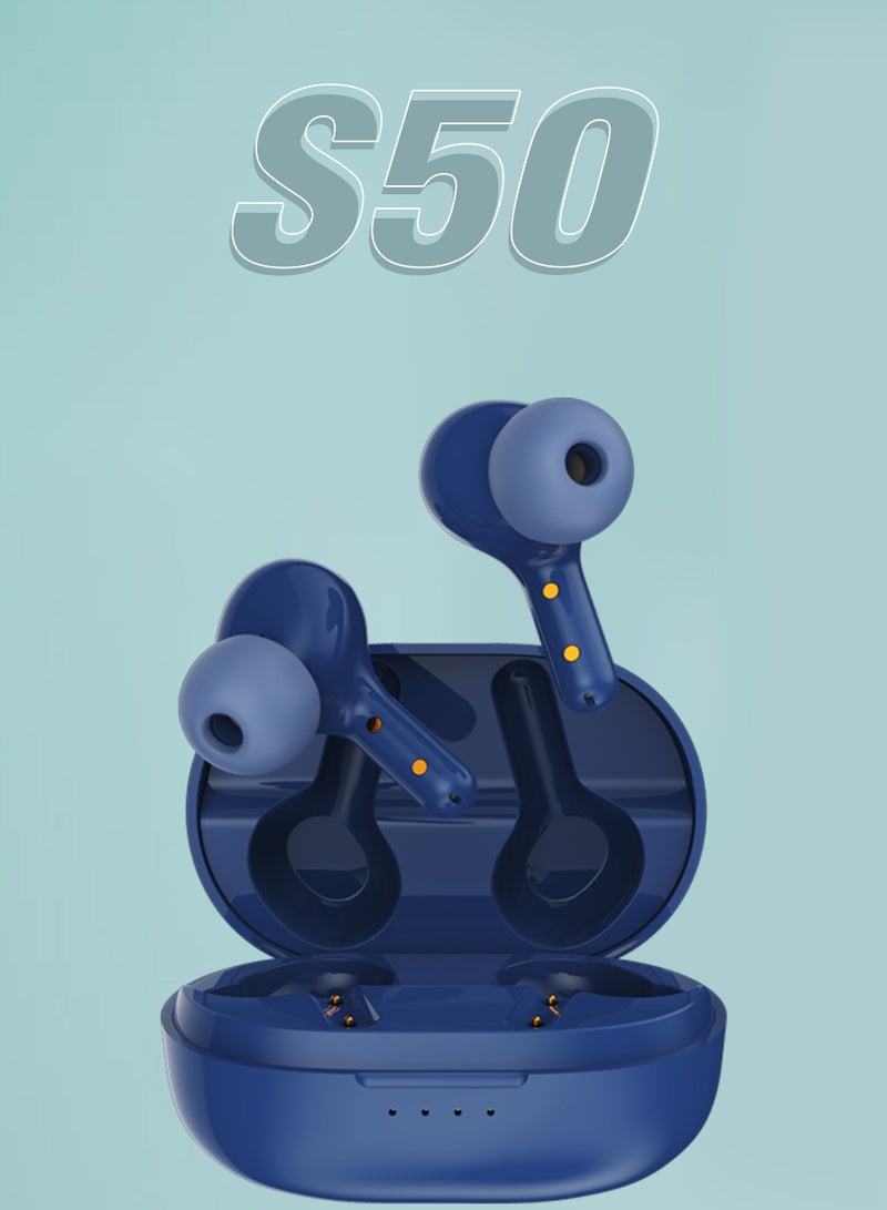 S50 Wireless Earbuds with Active Voice Assistant - 5 Hours Playtime - HiFi Stereo Sound - Bluetooth Earphones with Ultra-Low Latency - IPX5 Sweat & Splash Proof - For Exercise, Gym - Compatible with iPhone & Android (Blue)