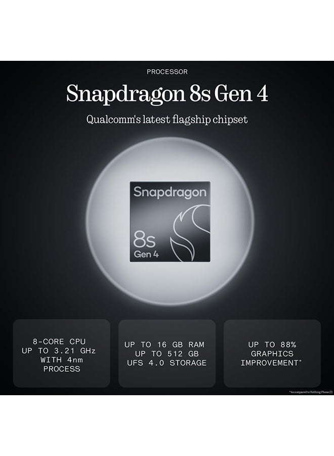 <p>The Nothing Phone 3 features the innovative <strong>Glyph Matrix</strong>, a unique notification system that uses customizable light patterns to alert you about calls, messages, and app notifications. Its advanced triple 50MP camera system delivers true-to-life colors and sharp, bright images, day or night, capturing every moment in stunning detail. Powered by the latest <strong>Snapdragon 8s Gen 4</strong> mobile platform, the Phone 3 offers ultra-high performance with an octa-core CPU running up to 3.12 GHz and supports up to 24GB RAM Boost for seamless multitasking and gaming.</p>