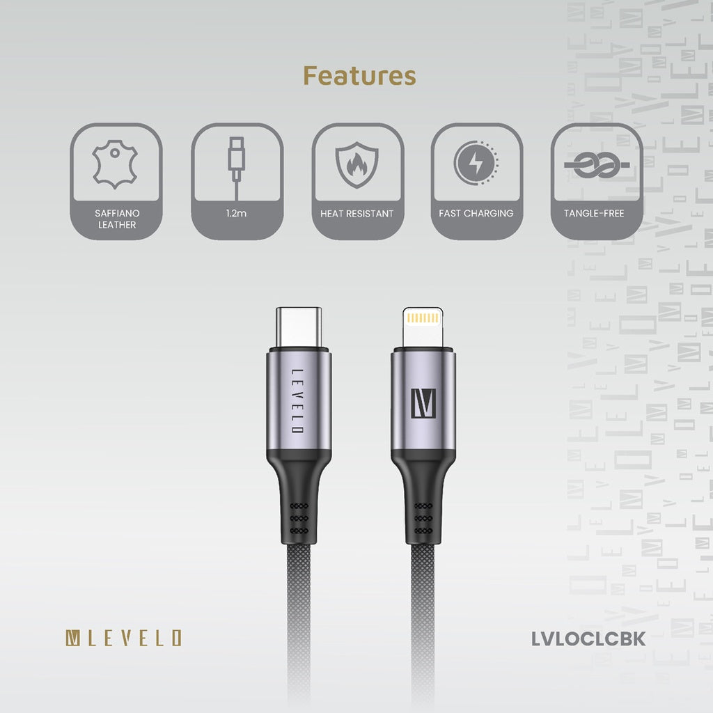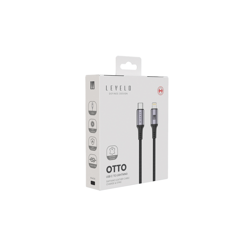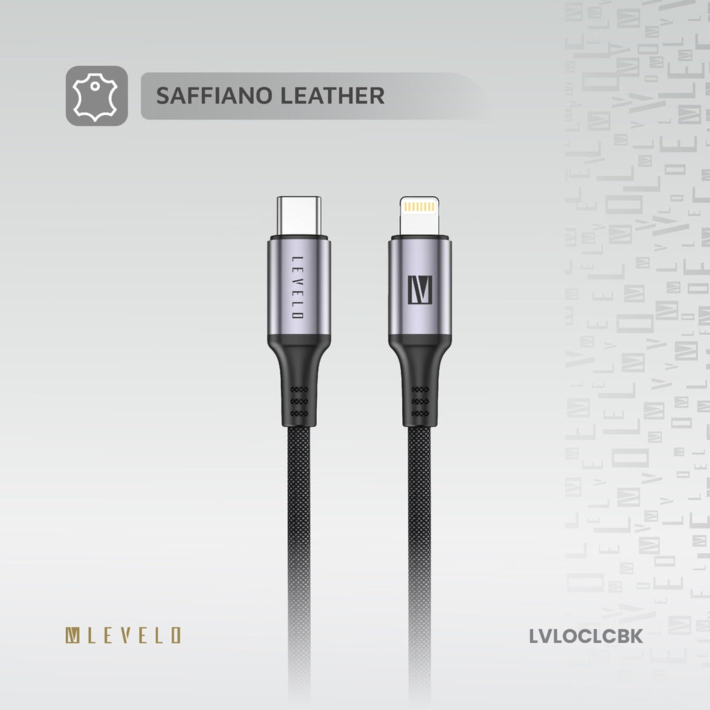 Levelo Otto USB-C to Lightning Leather Cable – 30W Fast Charging | Black
