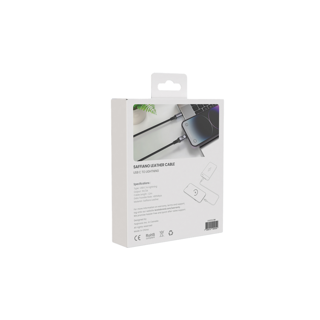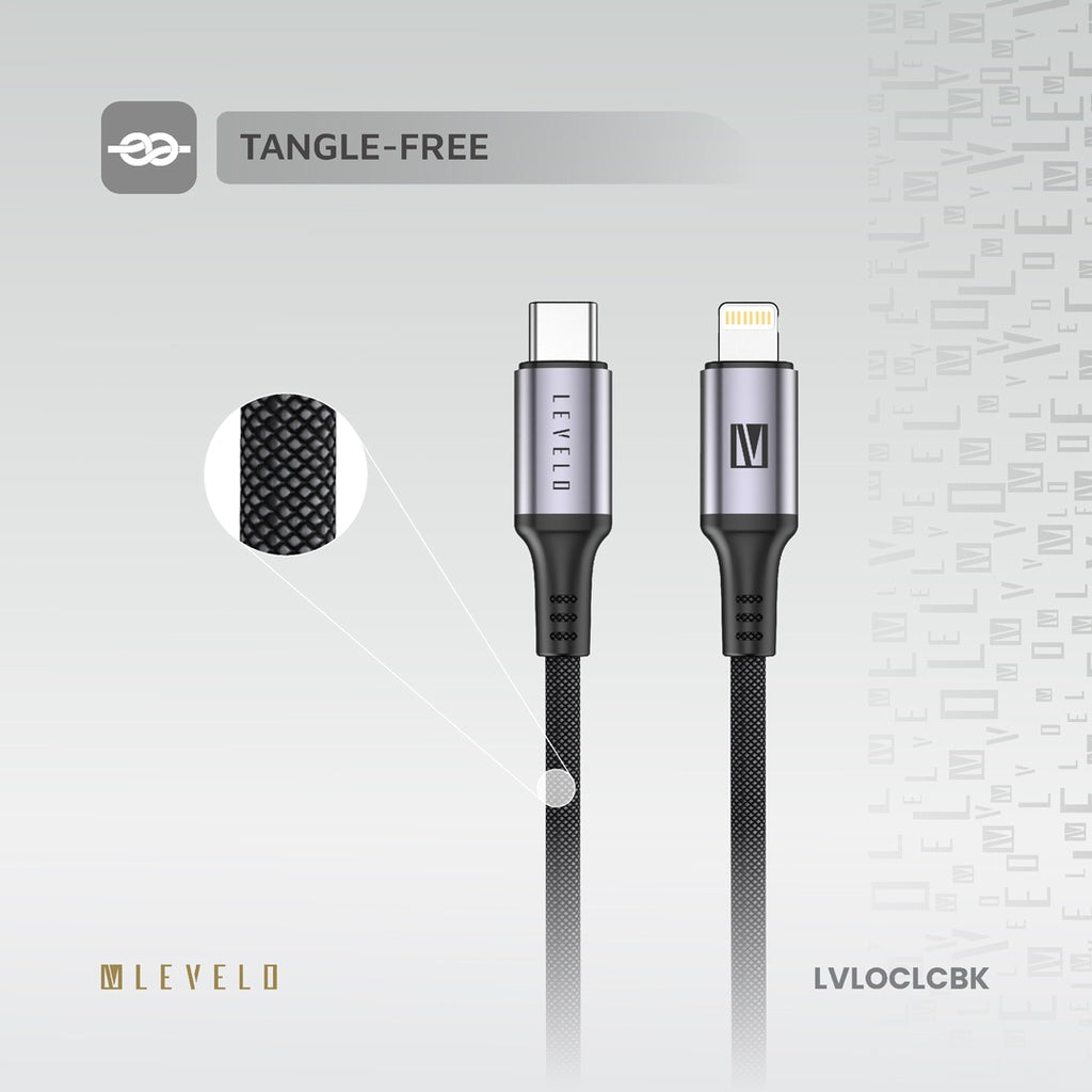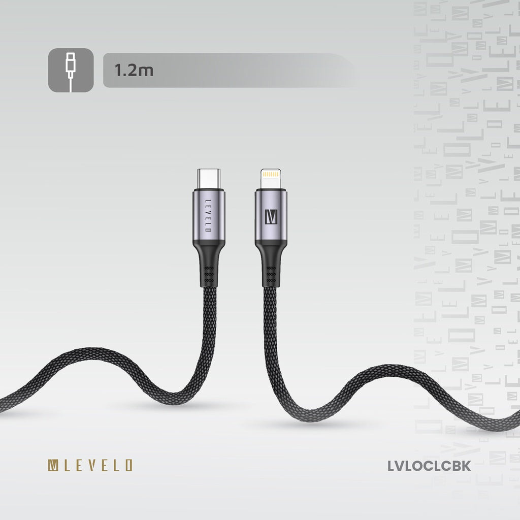 Levelo Otto USB-C to Lightning Leather Cable – 30W Fast Charging | Black