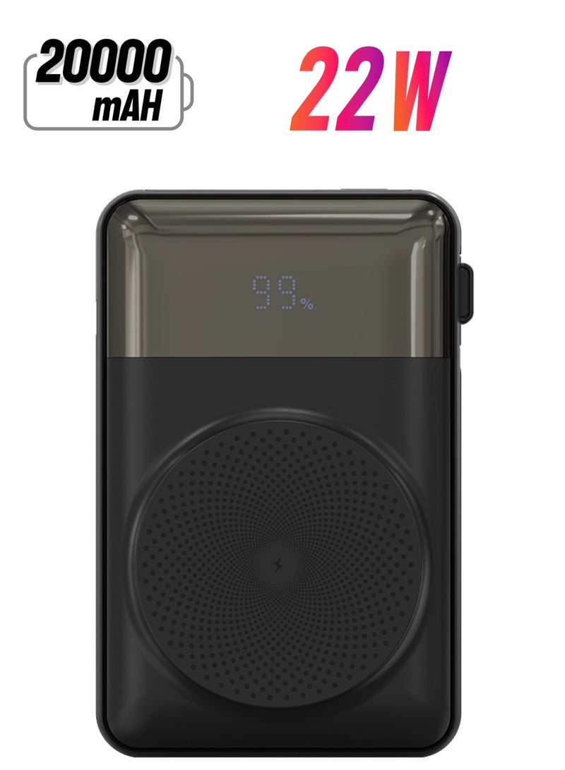<p>Supports <strong>wireless charging</strong> for compatible devices, offering a cable-free and hassle-free charging experience. The built-in stand ensures your device stays securely in place, while the power indicator keeps you informed of the remaining battery.</p>