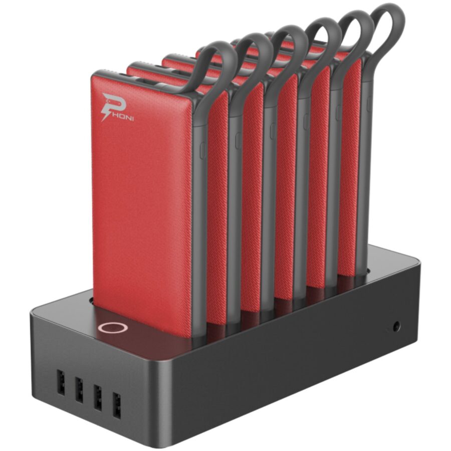 <ul><li>Phoni 6 in 1 power station comes in 3 beautiful colors to suit your home or business. Each of the 6 portable banks comes in 10,000 mAh capacity. Enough to charge modern smartphones twice or more depending on the size.</li></ul>