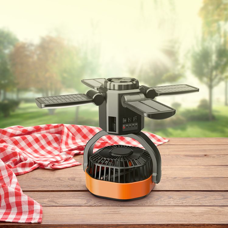 Porodo Suncharge Outdoor Solar Fan – LED Light, Power Bank & 6000mAh Battery