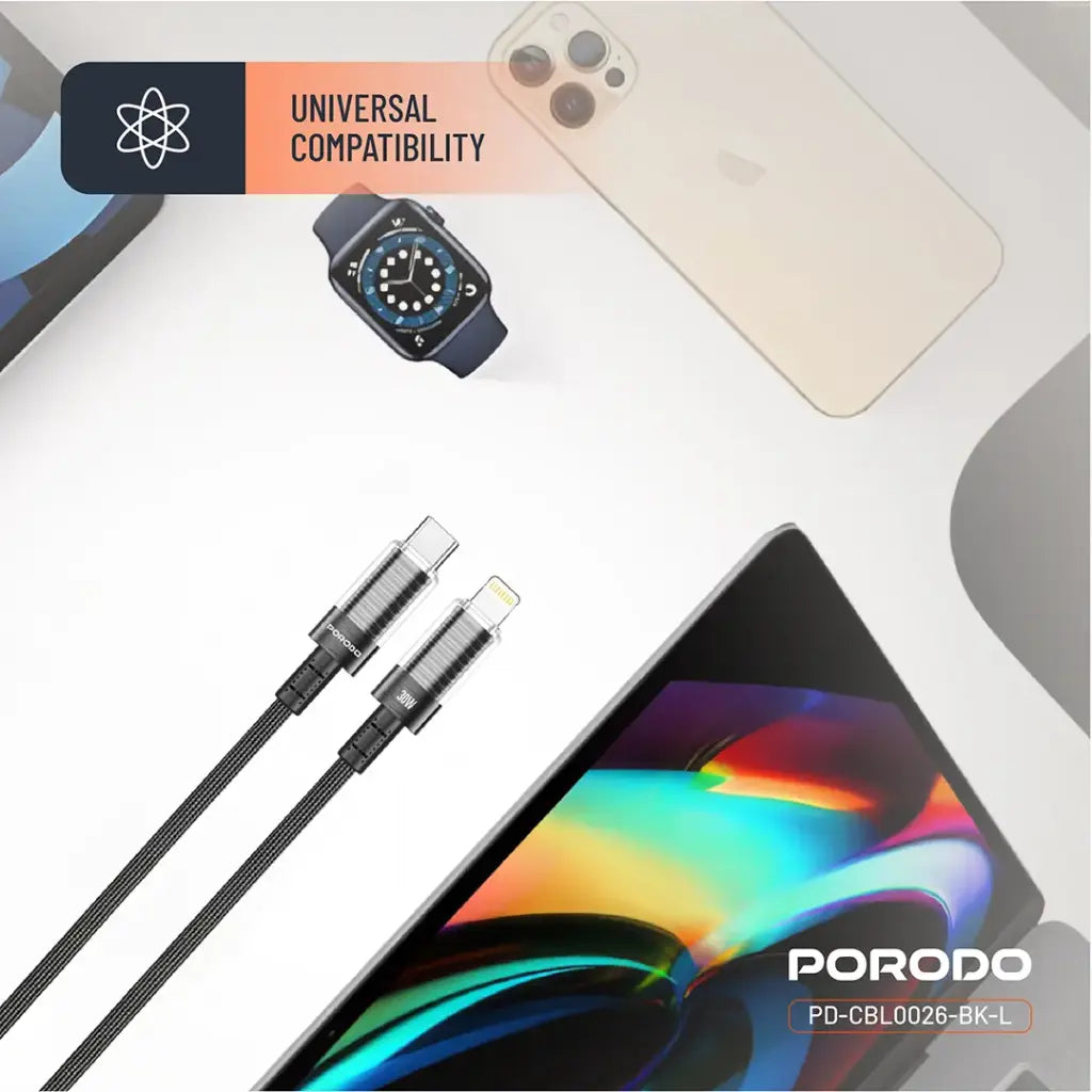 Porodo Transparent Shell USB-C To Lightning Cable - Black