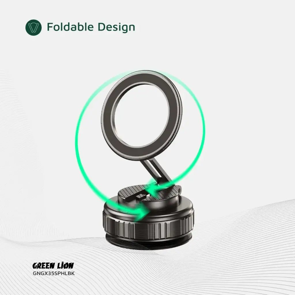 Green Lion GX-35 Suction Phone Holder - Strong & Durable with N52 Magnets, MagSafe Compatibility, 3-Axis Adjustment, Zinc Alloy Arm, Foldable Design, 2 kg Adsorption Force