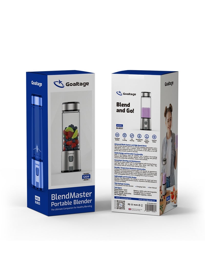 Goaltage BlendMaster Portable Blender – High-Speed, Rechargeable, Ice-Crushing 450ml