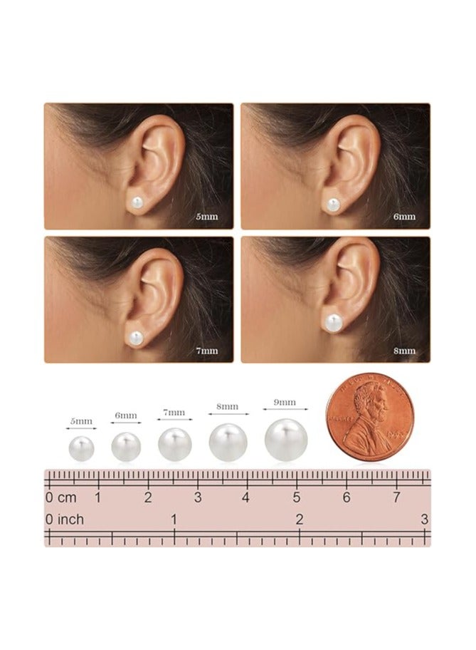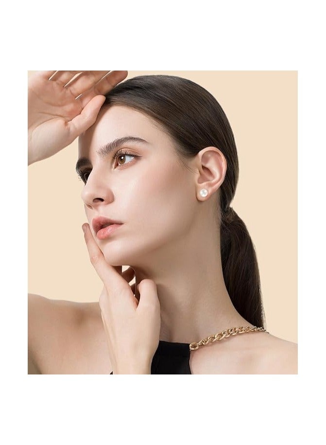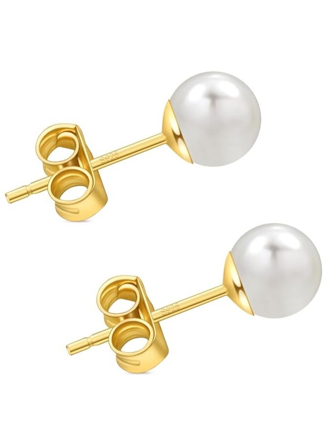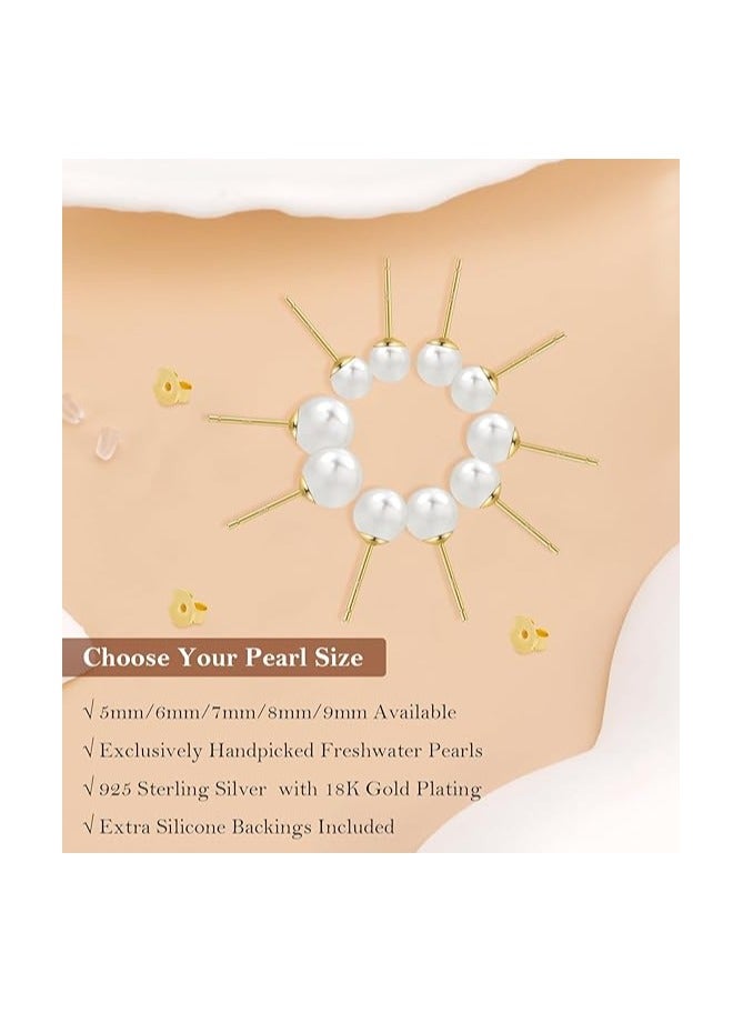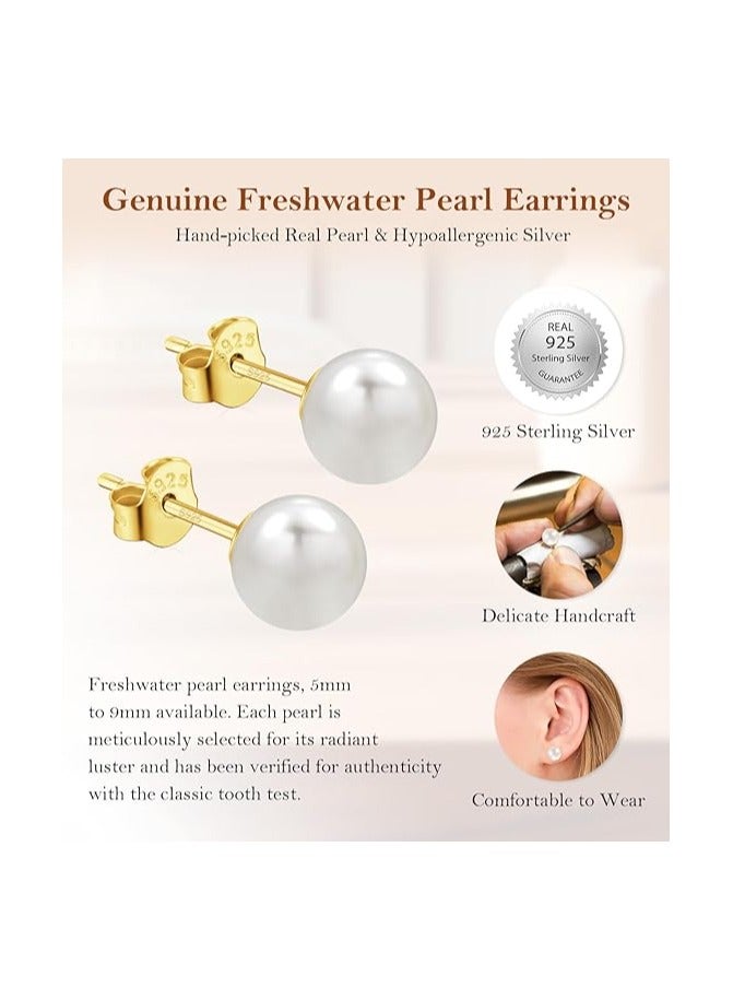 8MM Freshwater Pearl Stud Earrings for Women, Hypoallergenic 18K Gold Vermeil Earrings Studs with Genuine Round White Pearls