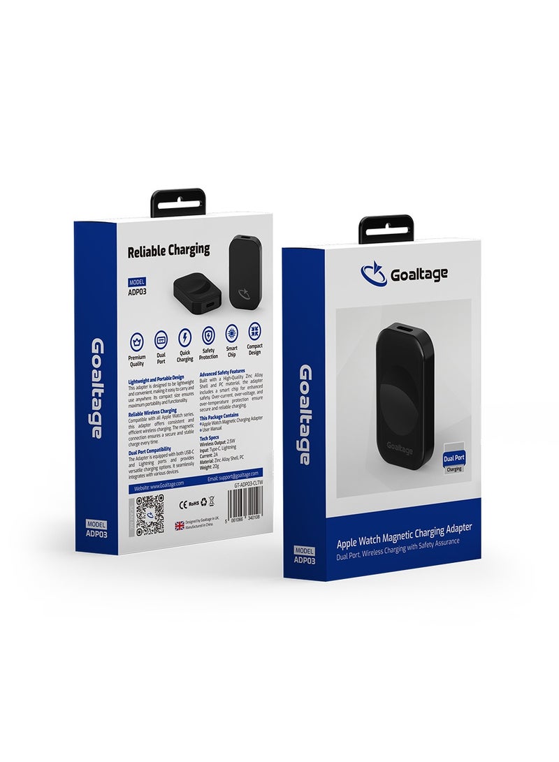 <p>With its combination of portability, efficiency, dual-port versatility, and advanced safety features, the <strong>Goaltage ADP03 Apple Watch Magnetic Charging Adapter</strong> is the ultimate accessory for keeping your Apple Watch charged and ready anytime, anywhere.</p>