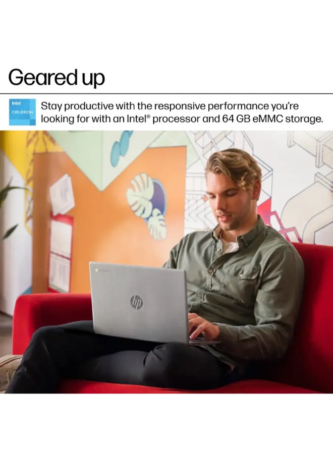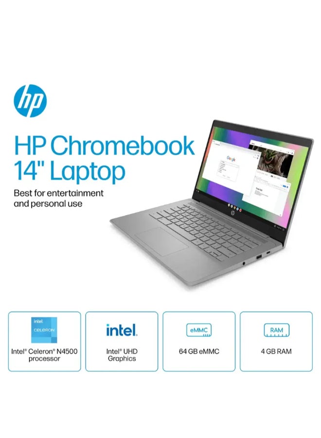 Chromebook Laptop With 14-Inch Display, Celeron Processor/4GB RAM/64GB Emmc/Intel UHD Graphics/Chrome OS English Modern Grey