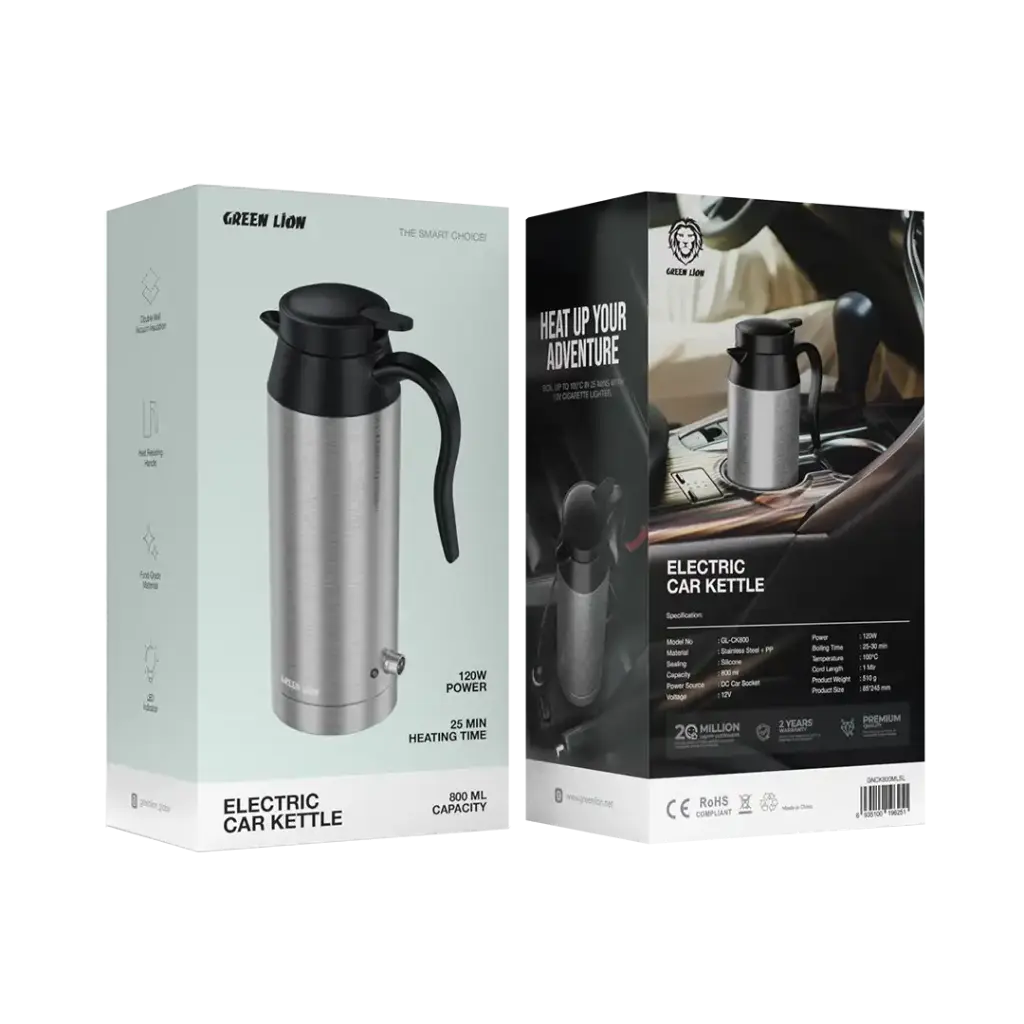 Green Lion Electric Car Kettle 800ml | Portable 12V Stainless Steel Travel Kettle