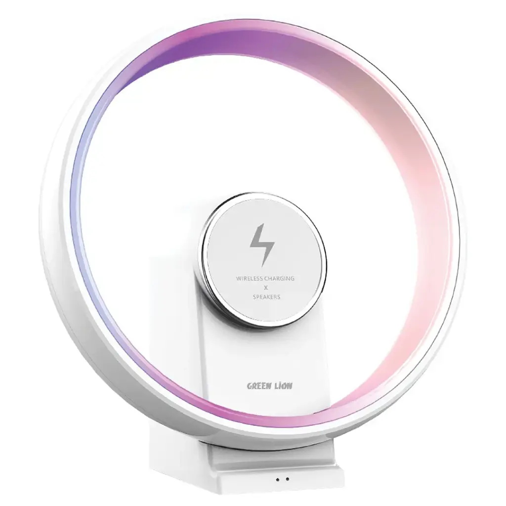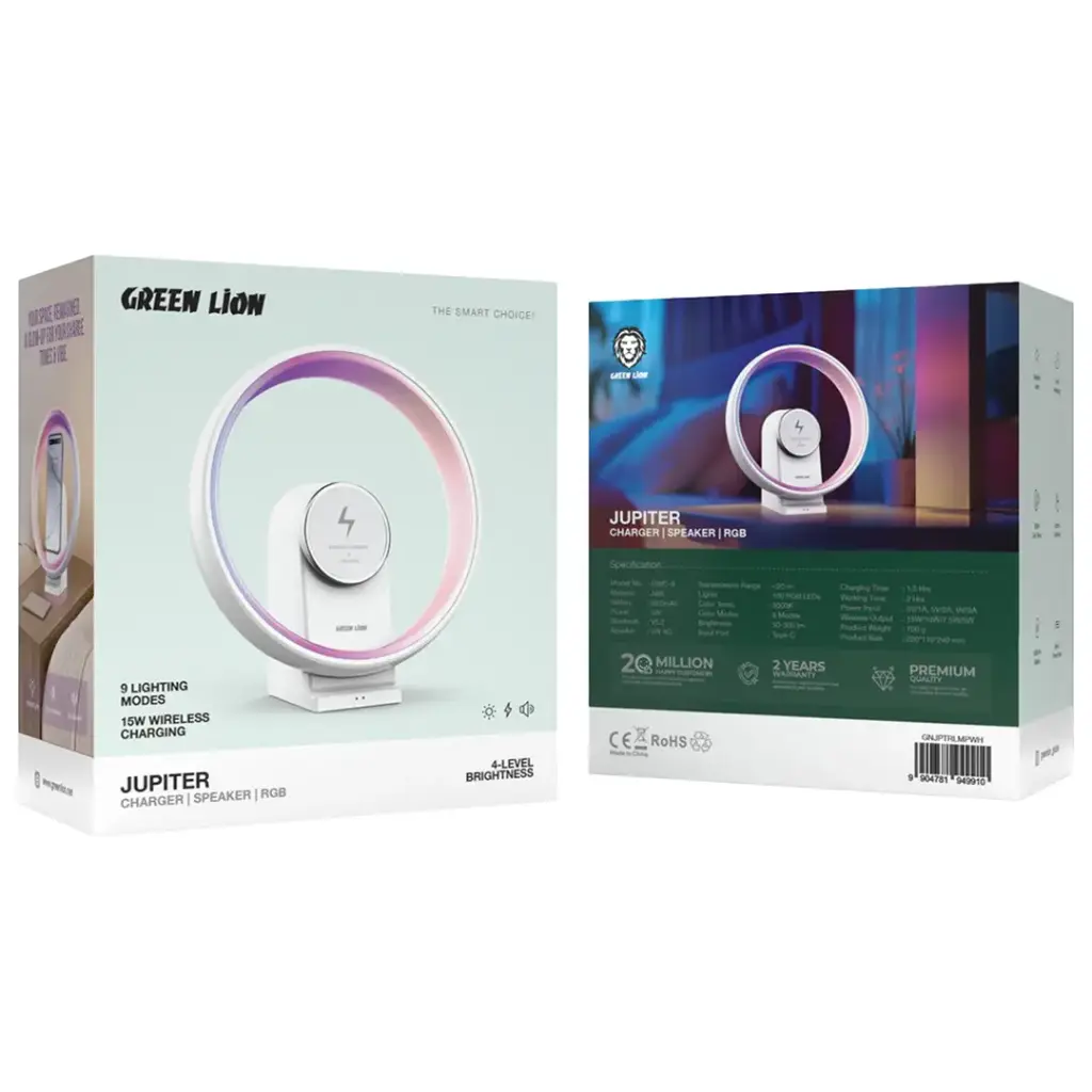 Green Lion Jupiter Bluetooth Speaker with Table Lamp | 5W Sound | 100 RGB LEDs | 15W Wireless Charging