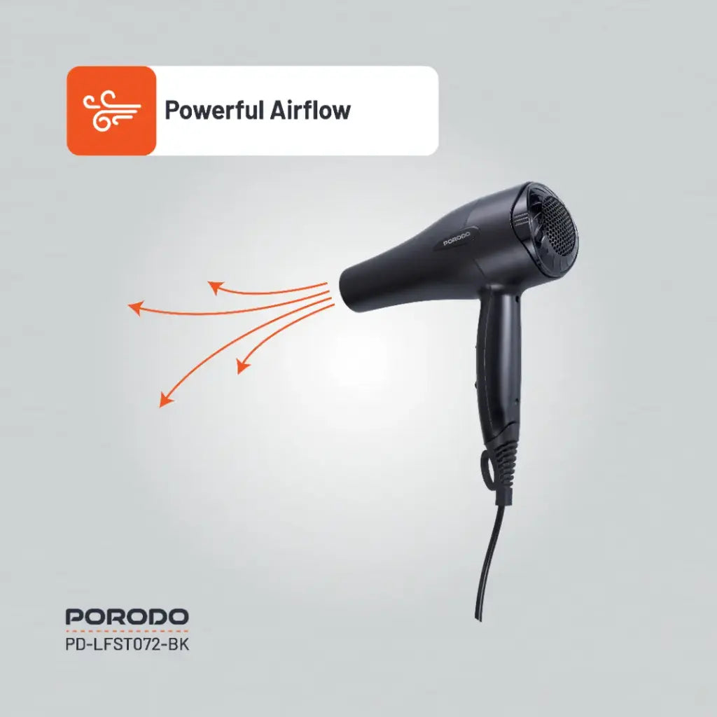 [PD-LFST072-BK] Porodo Lifestyle 1200W Hair Dryer 1.8M Cable - Black