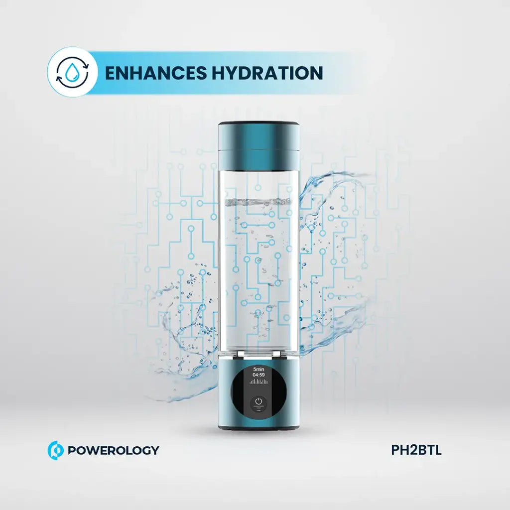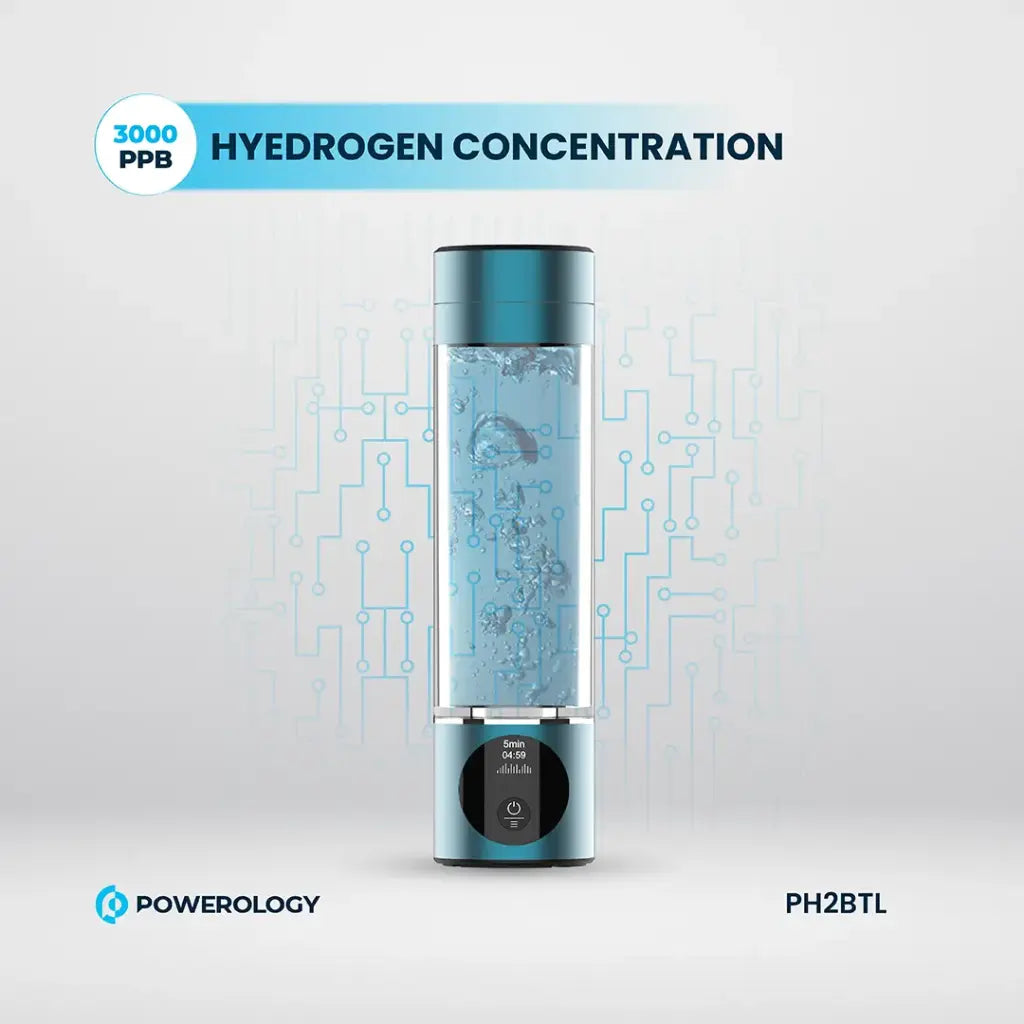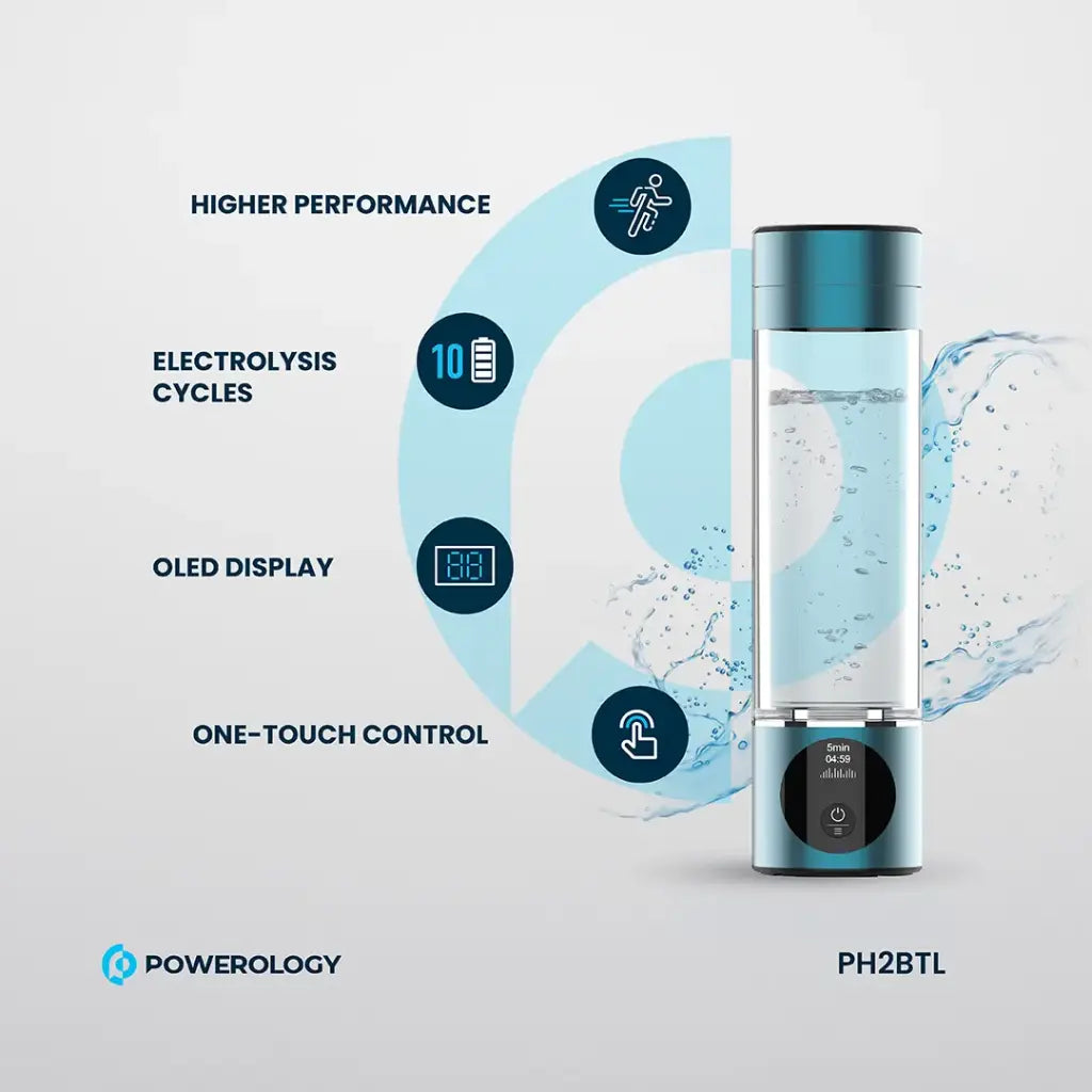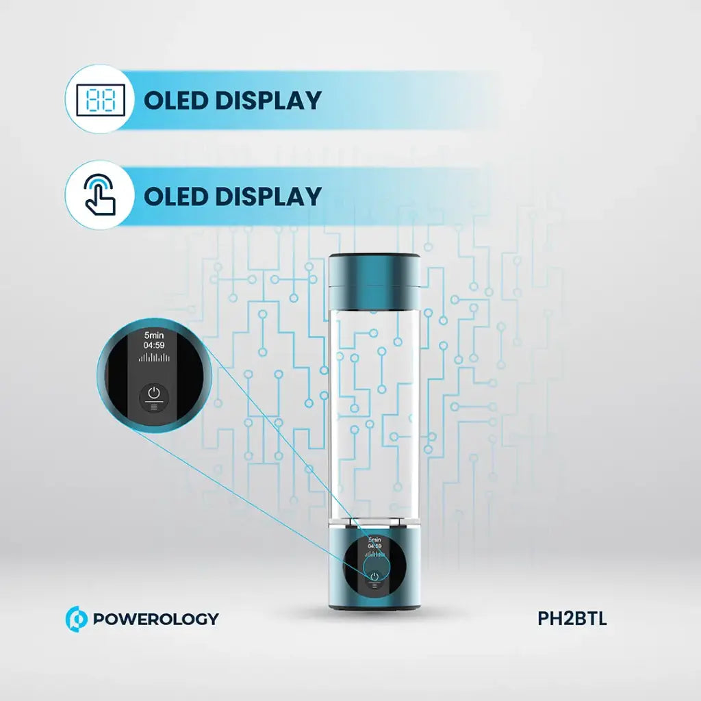 Powerology Hydrogen-Rich Water Generator | Portable 1200mAh Battery, OLED Display, 3000PPB Hydrogen Boost