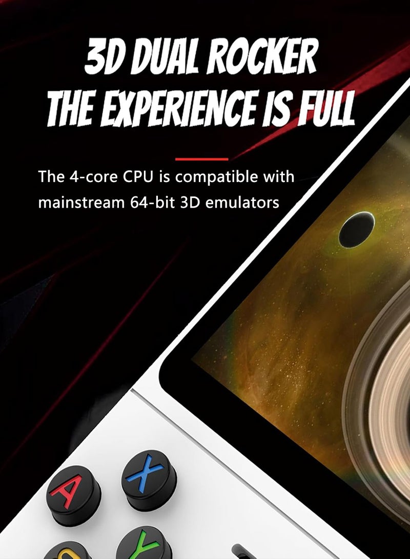 <strong>Powerful Performance:</strong> RK3326 1.5GHz 64-bit quad-core CPU and 1GB DDR4 RAM for smooth gameplay. 3200mAh battery provides up to 6 hours of continuous gaming, with USB Type-C fast charging.</li>