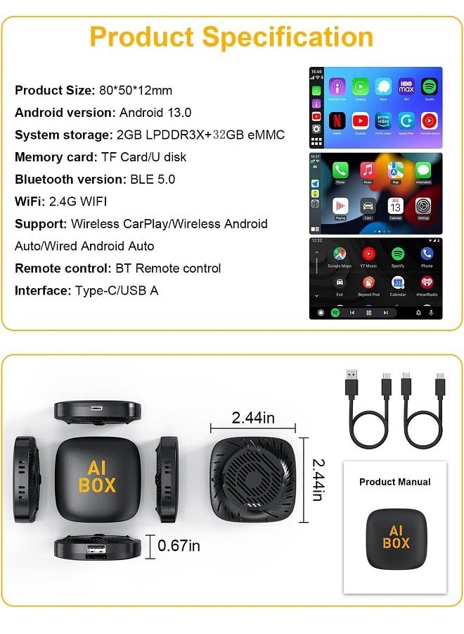 <p>Enjoy a clutter-free car interior and an enriched driving experience with this versatile wireless AI Box — perfect for streaming, navigation, and hands-free control on the go.</p>